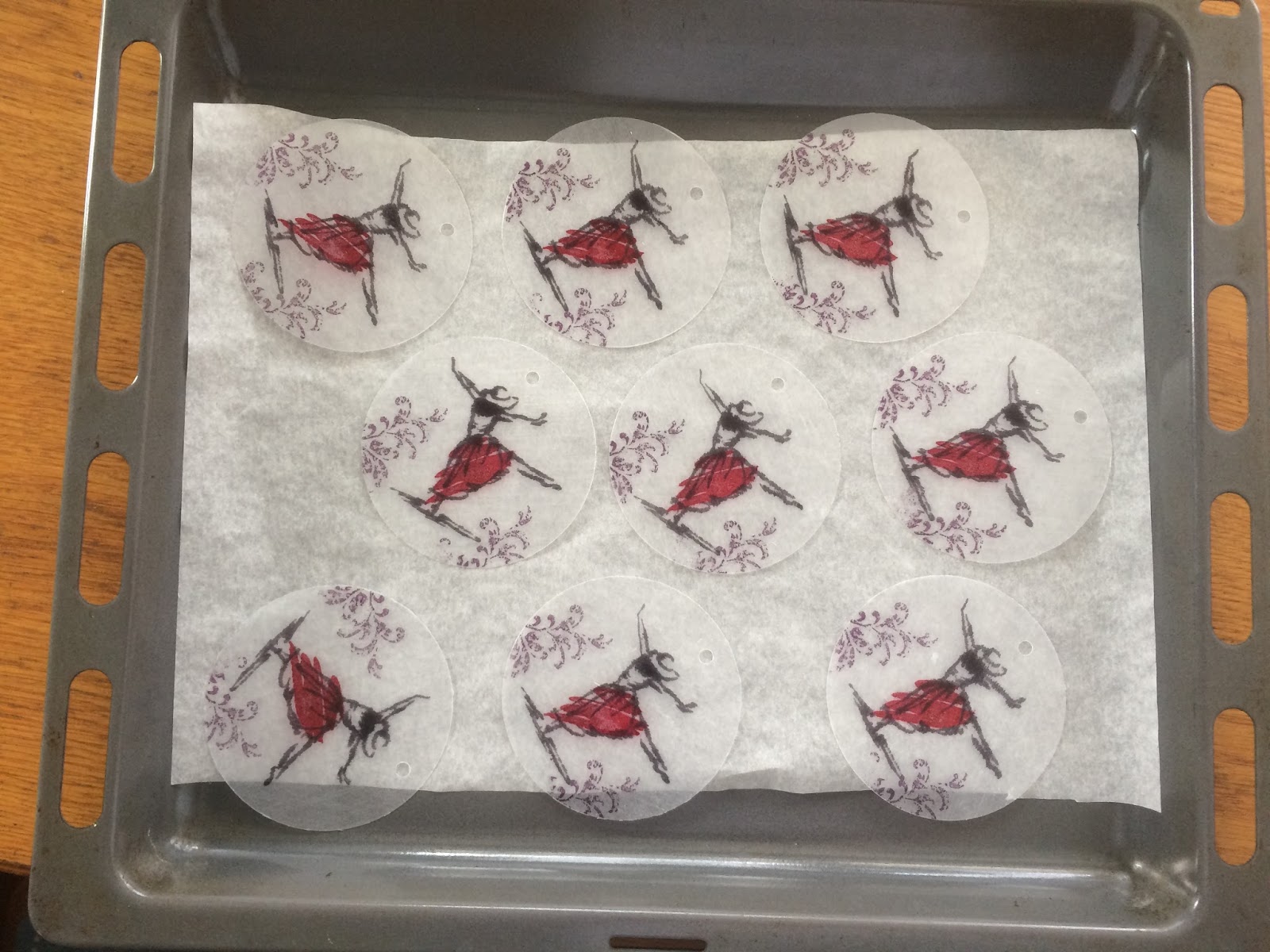 Ich machte insgesamt 65 Anhänger. Ein paar gestaltete ich mit der Libelle, ein paar mit Heißluftballons und da mir die Tänzerin einfach am Besten gefiel, machte ich die Meisten Anhänger mit ihr. Außerdem habe ich noch ein kleines Stück Band daran geknotet und fertig waren meine Swaps.
